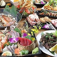 “사쓰마지닭 츠쿠네야키” “오야마지닭 닭 스테이크” “아침 끌기 닭의 야키토리 모듬” “어항 직송 사시미” “어부의 참을 수 없는 해물 덮밥” 등 호화 요리를 마실 무제한 코스에.닭고기와 해물의 사치를 다한 특별 코스.